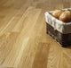 Parchet triplu stratificat din stejar, innobilat prin procedeul de periere, cu muchii pronuntate, subliniaza aspectul traditional al lemnului.